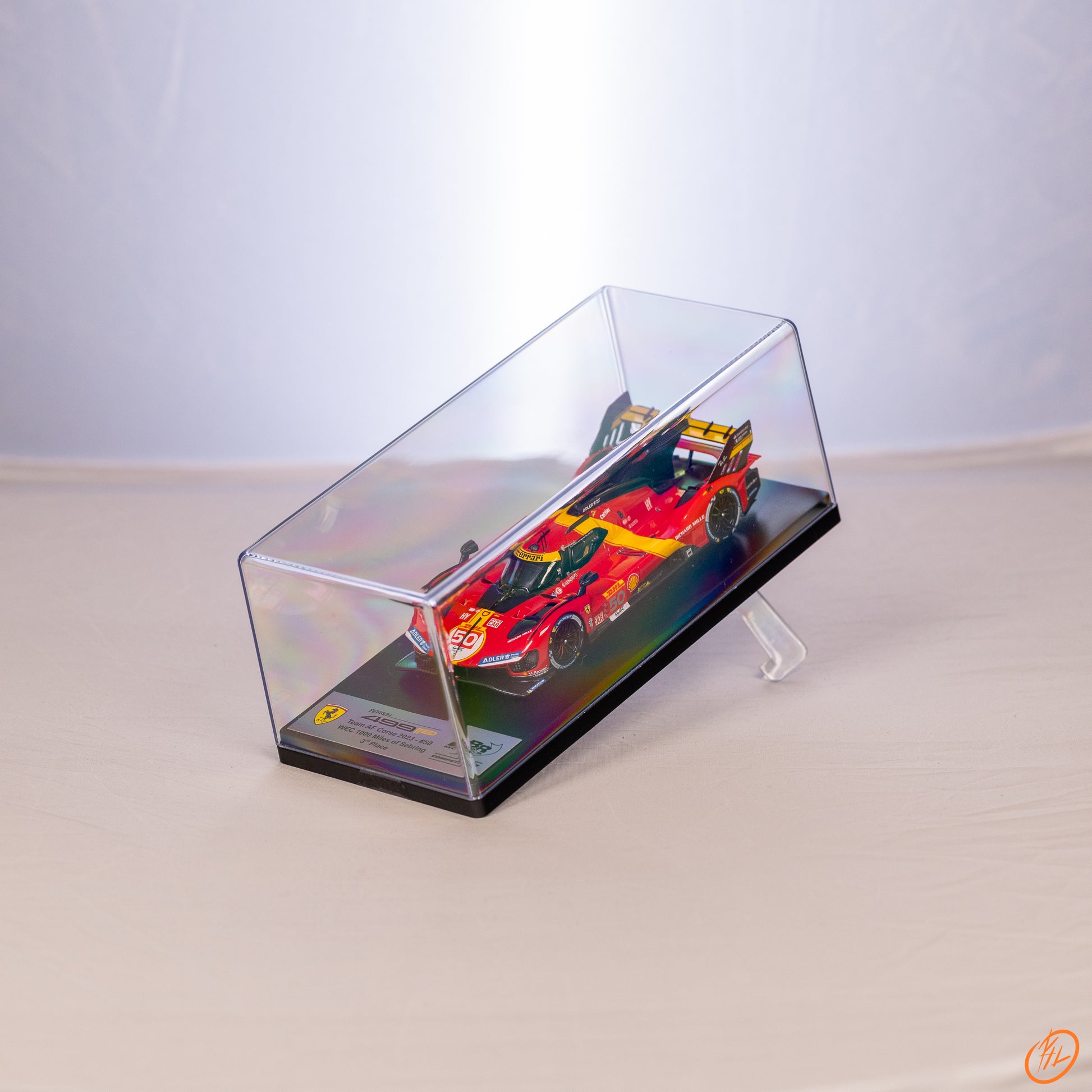 Ferrari powróciło do najwyższej klasy wyścigów wytrzymałościowych z modelem 499P. Po 50 latach nieobecności w klasie koronnej odniosło wiele sukcesów, w tym zajęcie 3. miejsca w wyścigu 1000 Miles of Sebring z dokładnie tym samochodem, który został odtworzony w formie tego modelu. Obejmuje on podstawkę przypominającą karbon i tabliczkę z logo producenta i nazwą modelu.